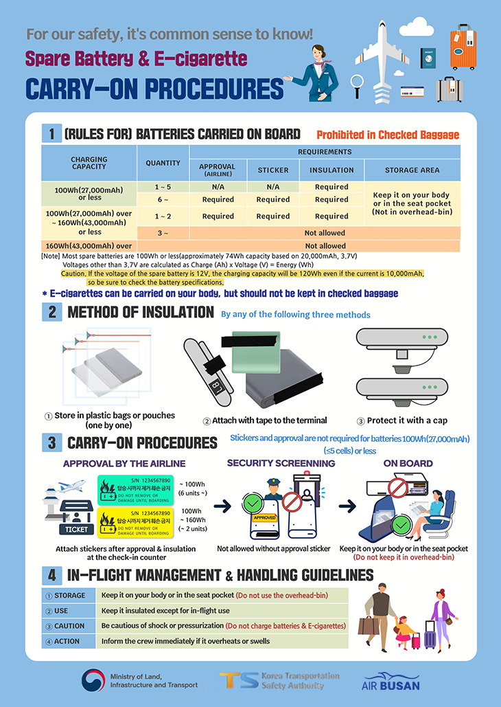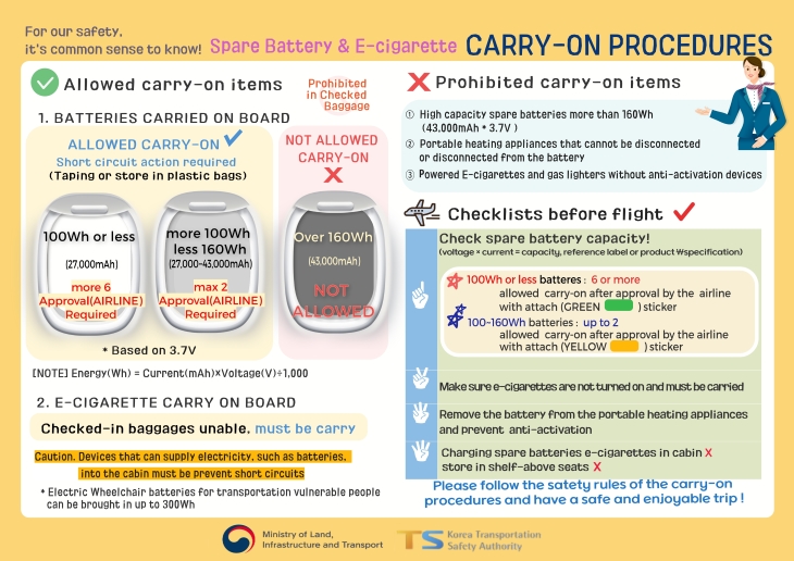 ※その他機内持ち込み及び委託ができない危険物は[日本国土交通省ホームページ内案内文] を通じて確認してください。